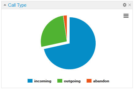 یکی دیگر از ویجت های گزارش گیر سانترال یا کاسنتر آنلاین، ویجت نوع تماس می باشد که نموداری دایره ای بوده و درصد تماس های شما را بر اساس تماس های ورودی، خروجی و بی پاسخ به شما نمایش می دهد. کاربرد آن زمانی برای شما قابل لمس می باشد که شما در داشبورد خود دو تا از این نمودار را در کنار هم قرار دهید و یکی را برای روز قبل و یکی را برای امروز تنظیم کرده باشید تا نسبت کلی تماس های تان نسبت به دو زمان مختلف را برایتان نمایش دهد. در زمان هایی که تبلیغات، آگهی و یا هر برنامه ی ویژه ای را اجرا کرده باشید تفاوت بین دو زمان را به خوبی می توانید متوجه شوید.